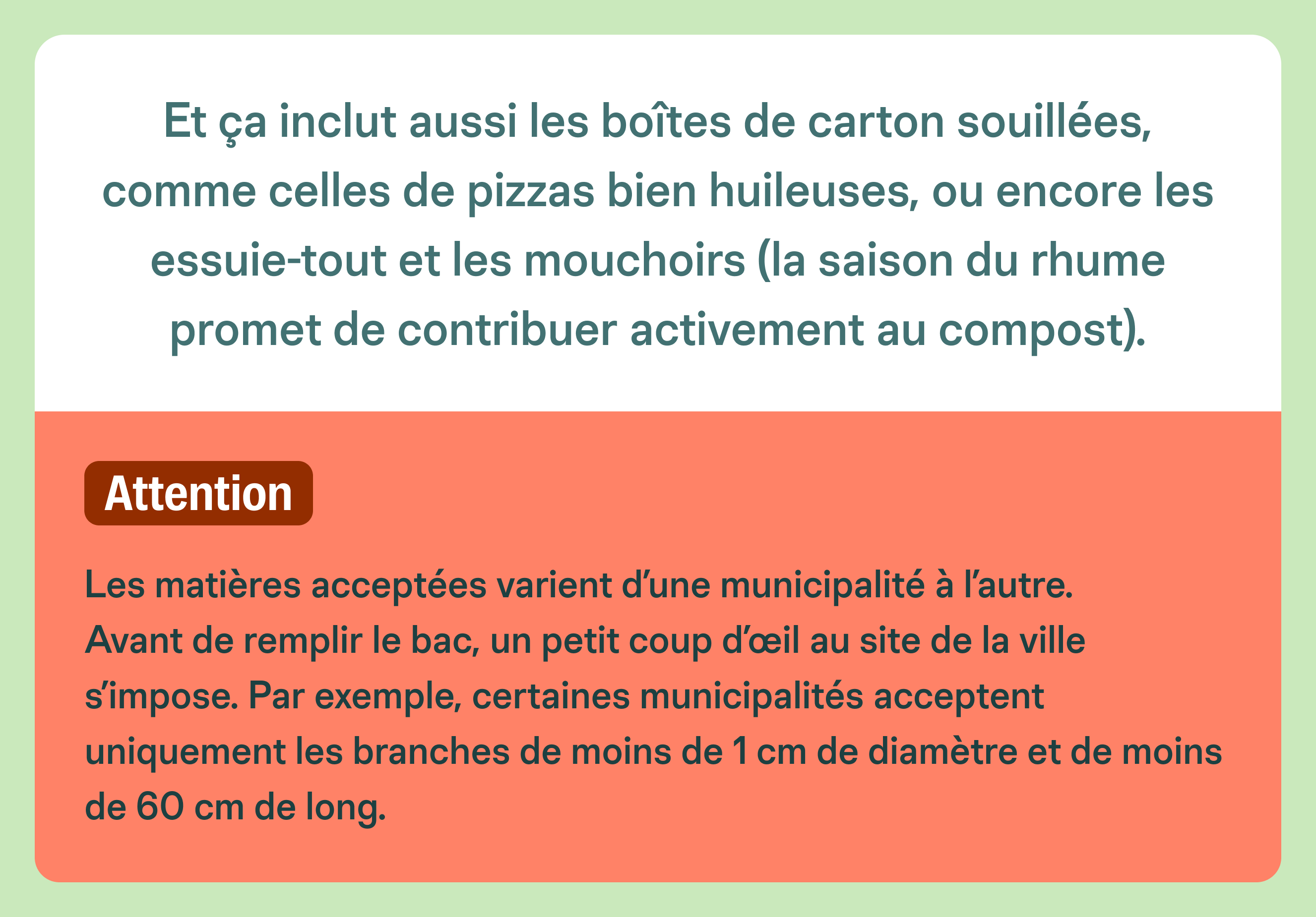 Pour connaître les règles de compostage spécifiques à chaque municipalité, téléchargez l’application Ça va où, de RECYC-QUÉBEC.